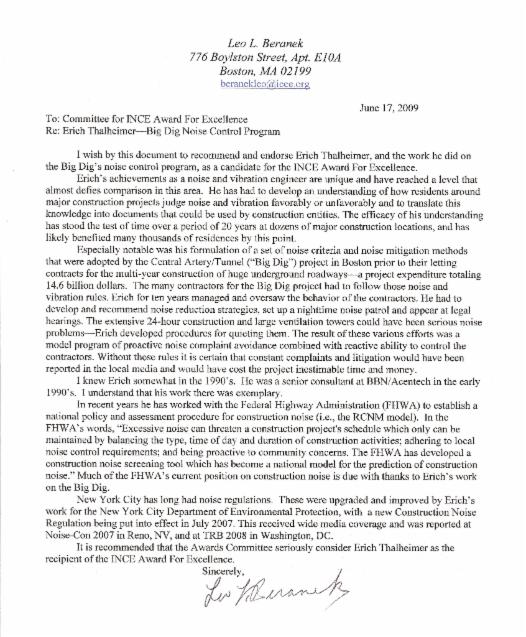 - Construction Noise Control Program and Mitigation Strategy at the Central Artery/Tunnel Project, presented and published (paper no. 184) at Inter-Noise 1999 Congress and Exposition, Ft. Lauderdale, FL, Dec. 1999, and later published as a singly-authored article in Noise Control Engineering Journal (NCEJ, 48(5), Sep-Oct 2000). NCEJ 2000 Big Dig CAT Construction Noise Program Article